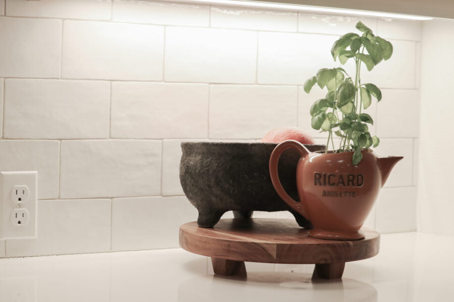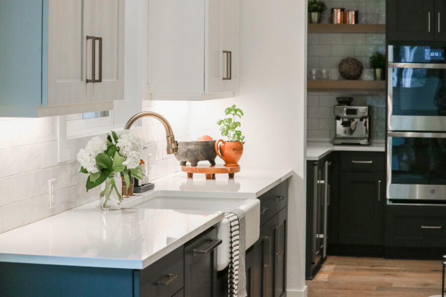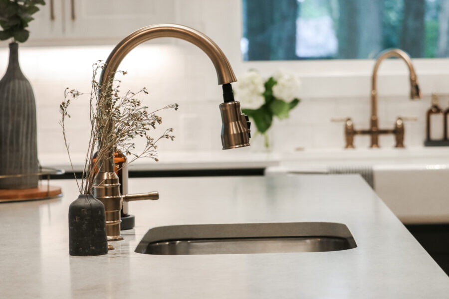 Our favorite countertop is the concreto honed quartz on our kitchen island. We love the way it looks. It’s not only stunning, but it also becomes a natural gathering place with friends and family in the home. We added 6cm edges to make it thicker and love the weight and texture it brings to the space.Â